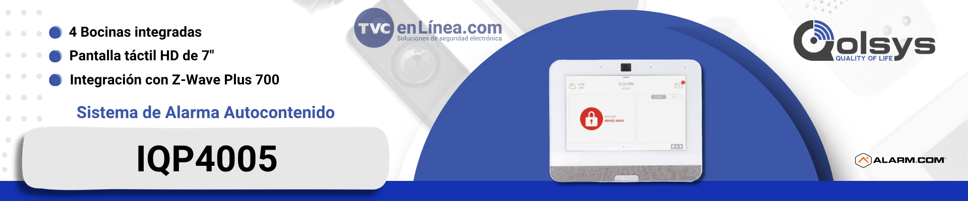 QOLSYS IQP4005 - Sistema de Alarma IQPanel4 Autocontenido , con Pantalla Tactil de 7", Power G 915 Mhz + DSC Serie Power 433 Mhz. Con 4 Bocinas integradas (4W). Para la plataforma Alarm.com
